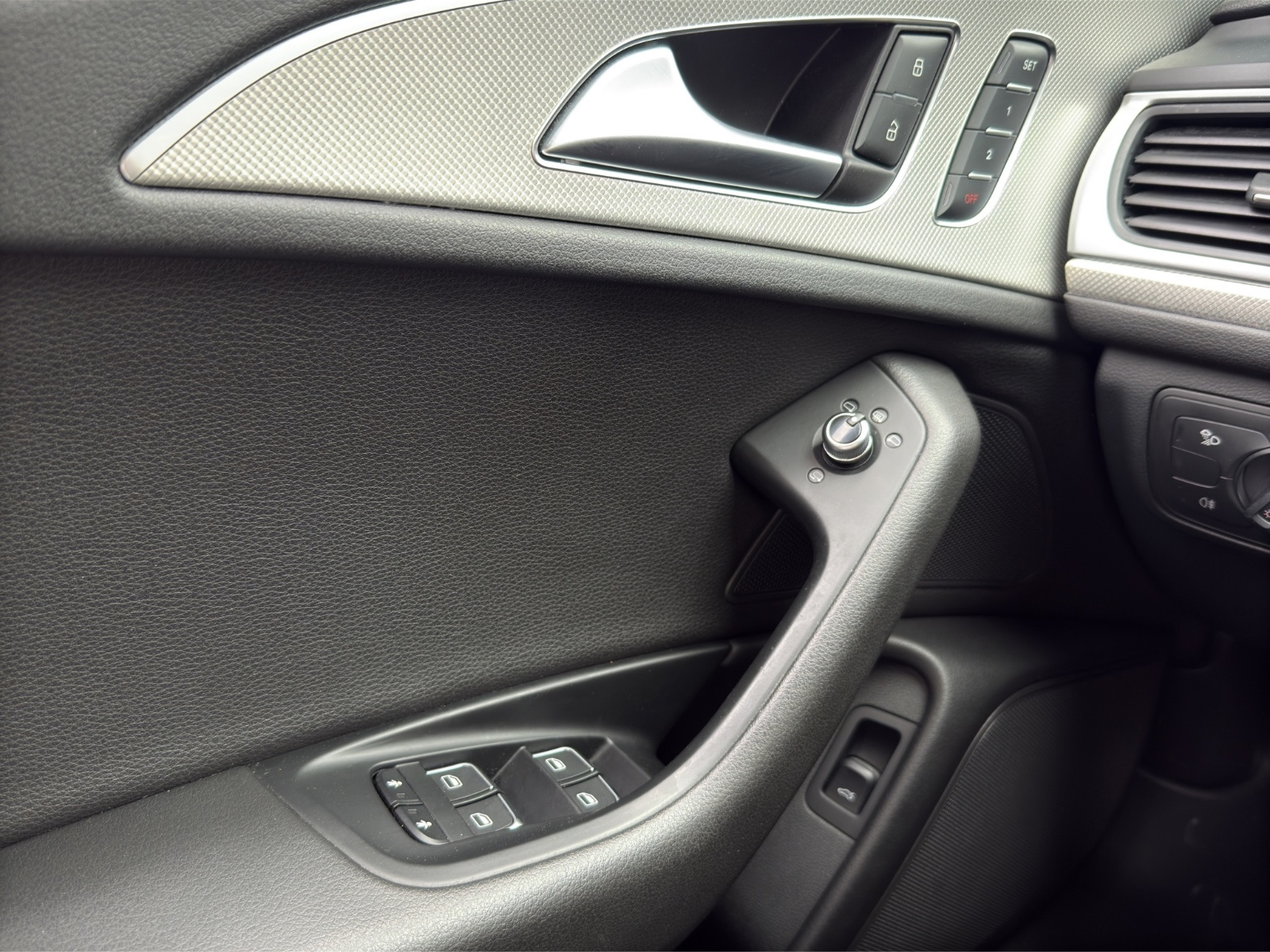 Applications aluminium autour des diffuseurs d'air, de l'écran MMI, sur la commande du frein de stationnement électromécanique et les lève-vitres