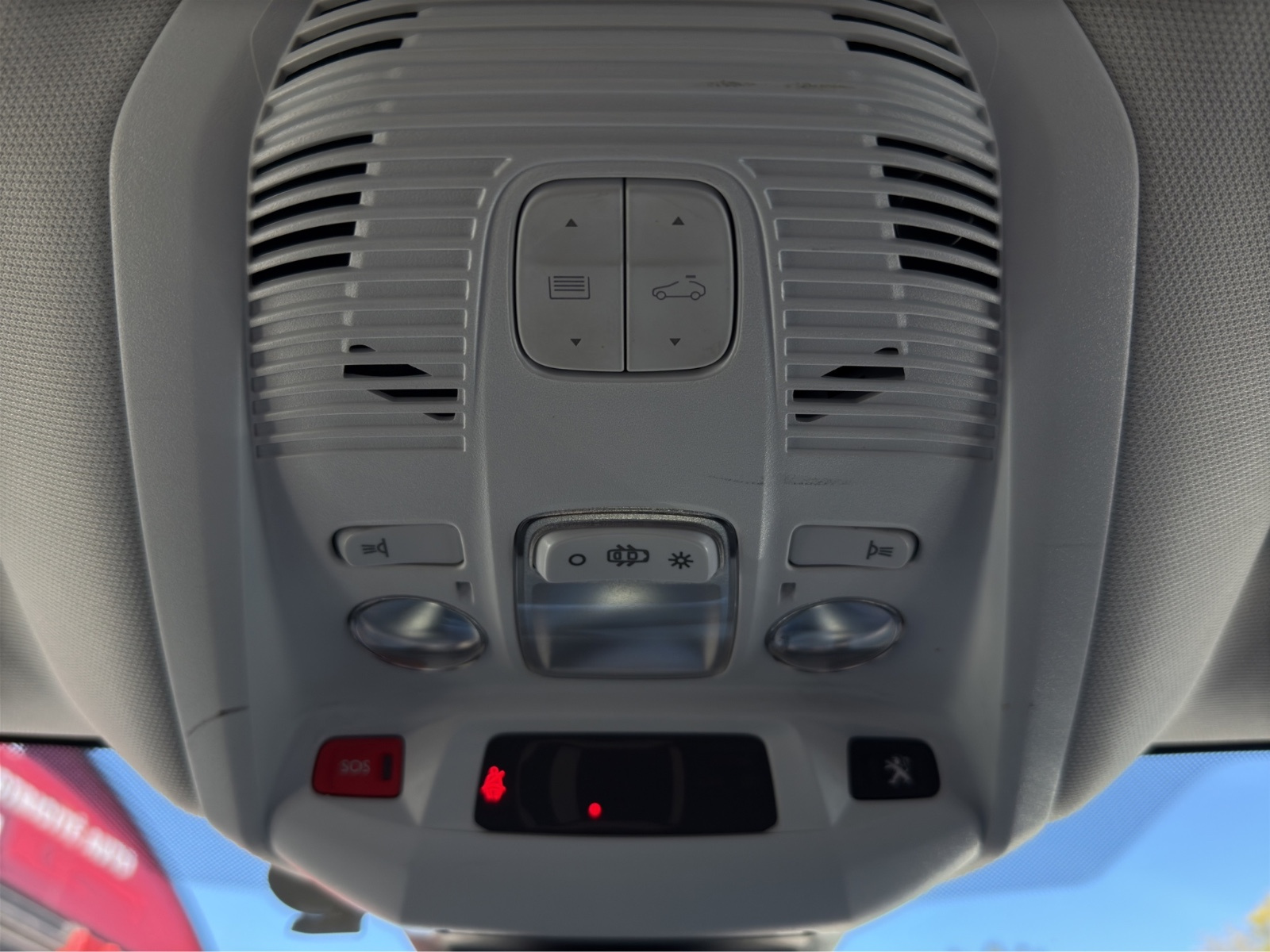 Plafonnier AV avec spots de lecture (x2) et plafonnier AR à extinction temporisée